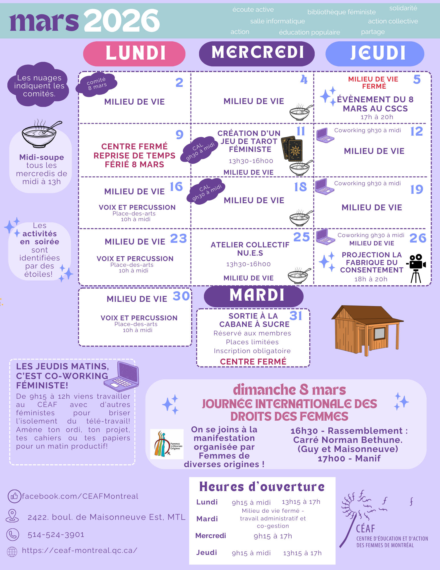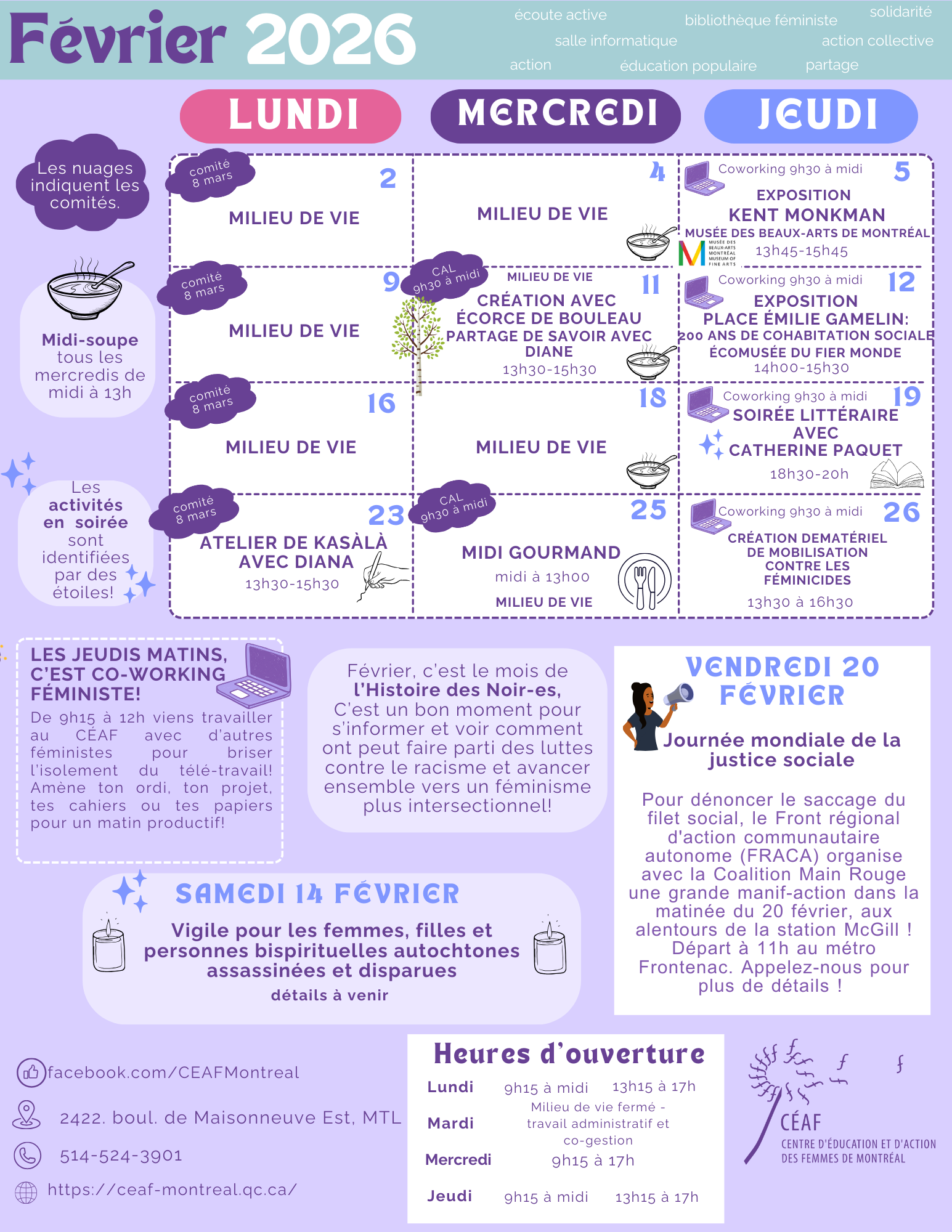 Curieuses de connaître quels genres d’activités ont au CÉAF? Voici nos programmations des années passées!
